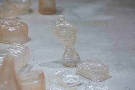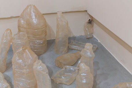 In some ways, my writing about Gwenyth Chao’s exhibition Plasticity is an act of imagining into the future—a kind of modest time-travel. As I write this, the hundreds of component sculptures that form this semi-translucent, glistening installation, aren’t yet assembled here. In filling this space with gorgeous and ghostly casts of everyday containers, the artist spent a lot of time with plastics, a material emblematic of how time works today.
